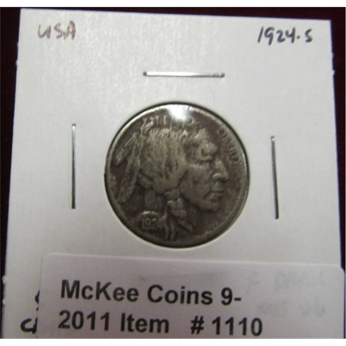 1110. 1924 S Buffalo Nickel. F dark, net VG.