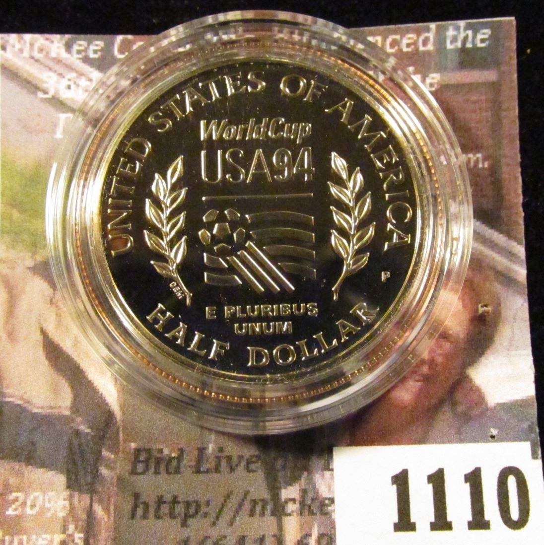 1994-P World Cup Soccer Tournament Commemorative Half Dollar, Proof in Mint Capsule, value $10