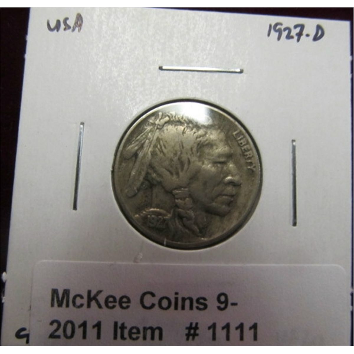 1111. 1927 D Buffalo Nickel. Rotated reverse. VF 20.