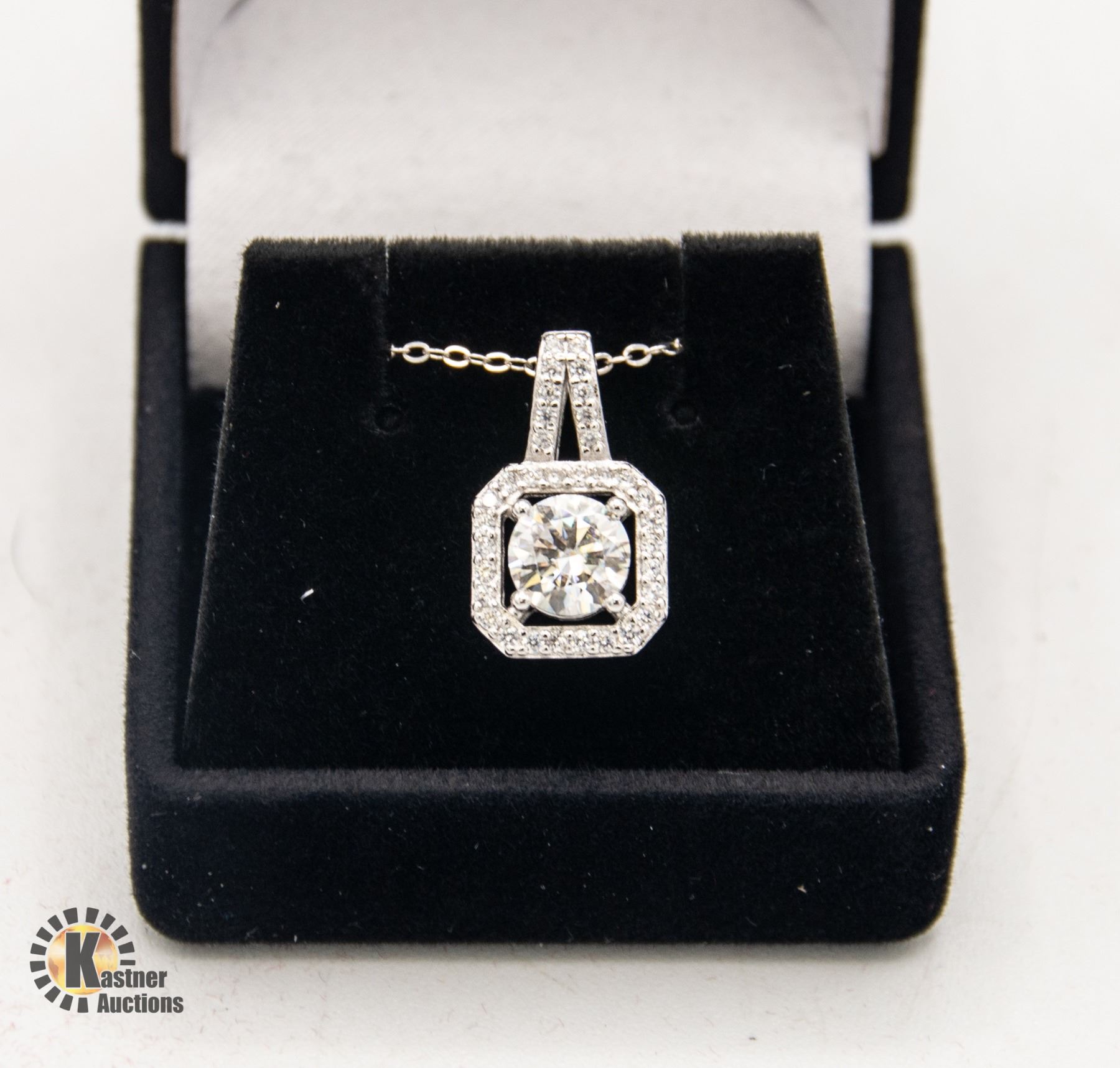 STONE VVS D COLOR WITH 34 ROUND BRILLIANT CUT CUBIC ZIRCONIA SET IN SQUARE SHAPED HALOS SET IN 925 SILVER PENDANT