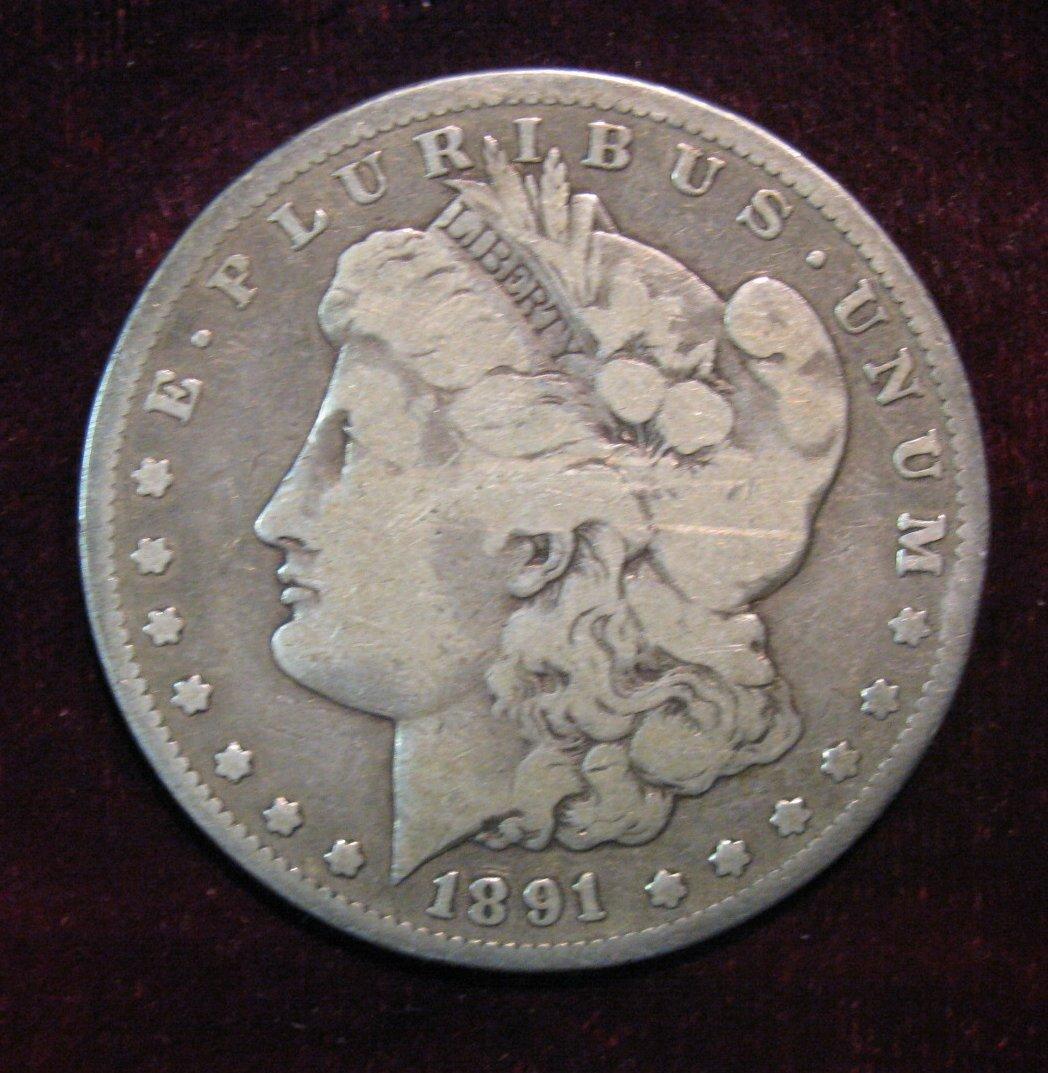1113. 1891CC Morgan Dollar. VG.
