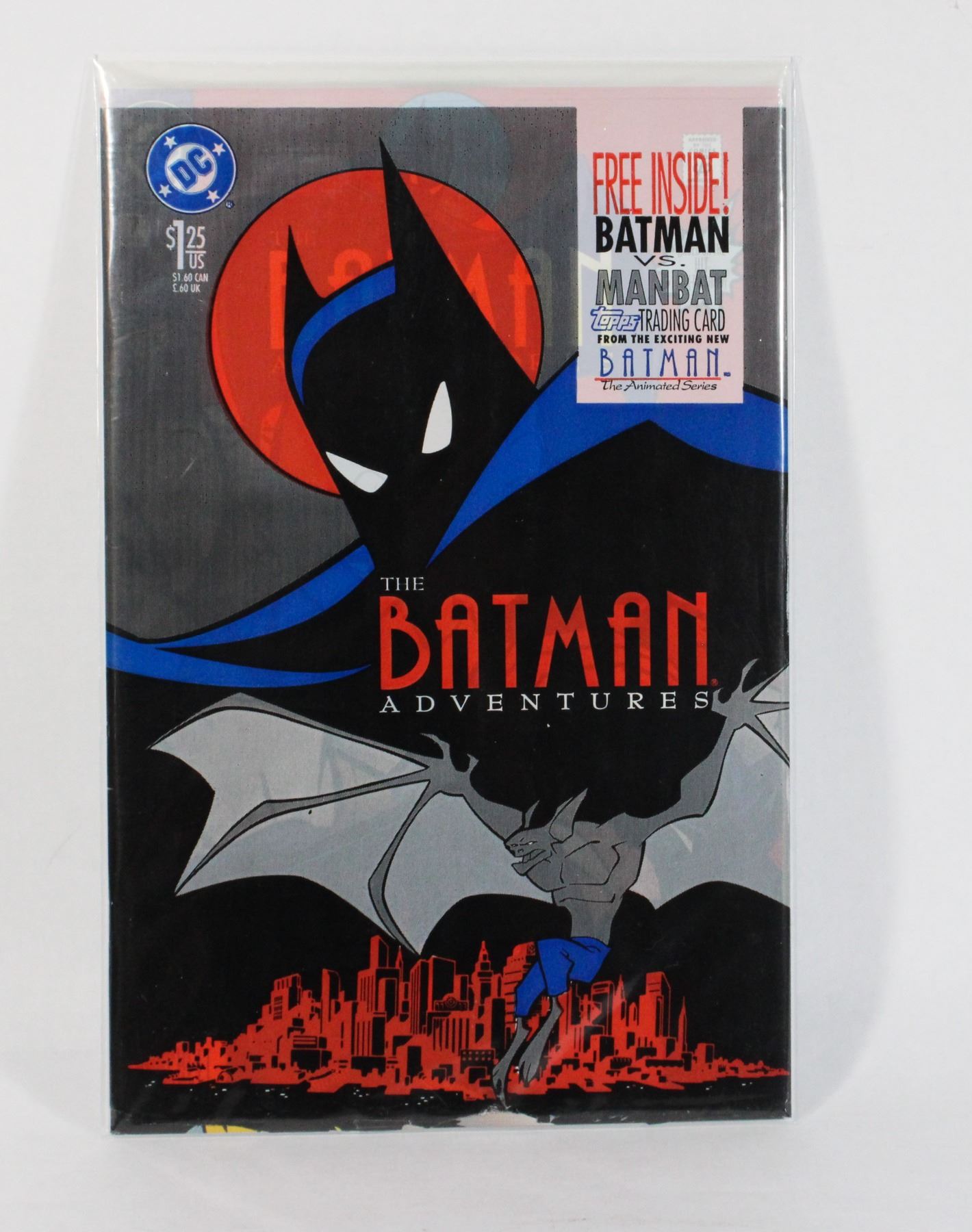 INCLUDES BATMAN ADVENTURES COMIC IN OPEN BAG WITH BATMAN VS MANBAT TRADING CARD - BASED ON BATMAN THE ANIMATED SERIES , BATMAN ADVENTURES DC DETECTIVE COMICS COMIC BOOK