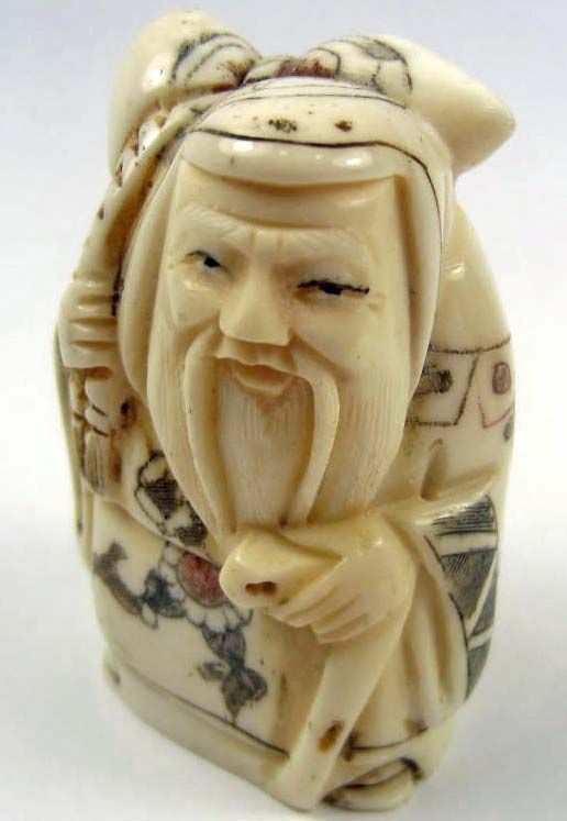 11148 - JAPANESE OX BONE NETSUKE - OLD MAN W/ CALABASH