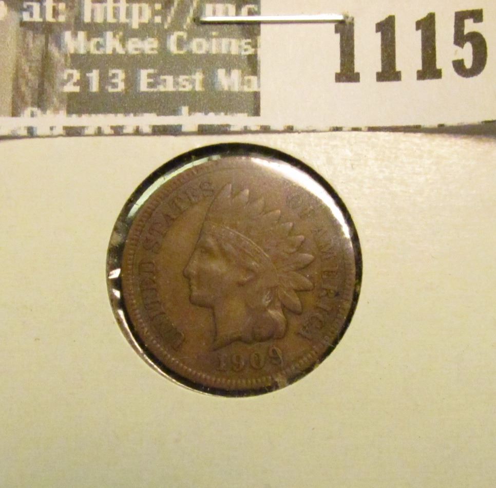 1115 _ 1909 S U.S. Indian Head Cent, Very Fine.