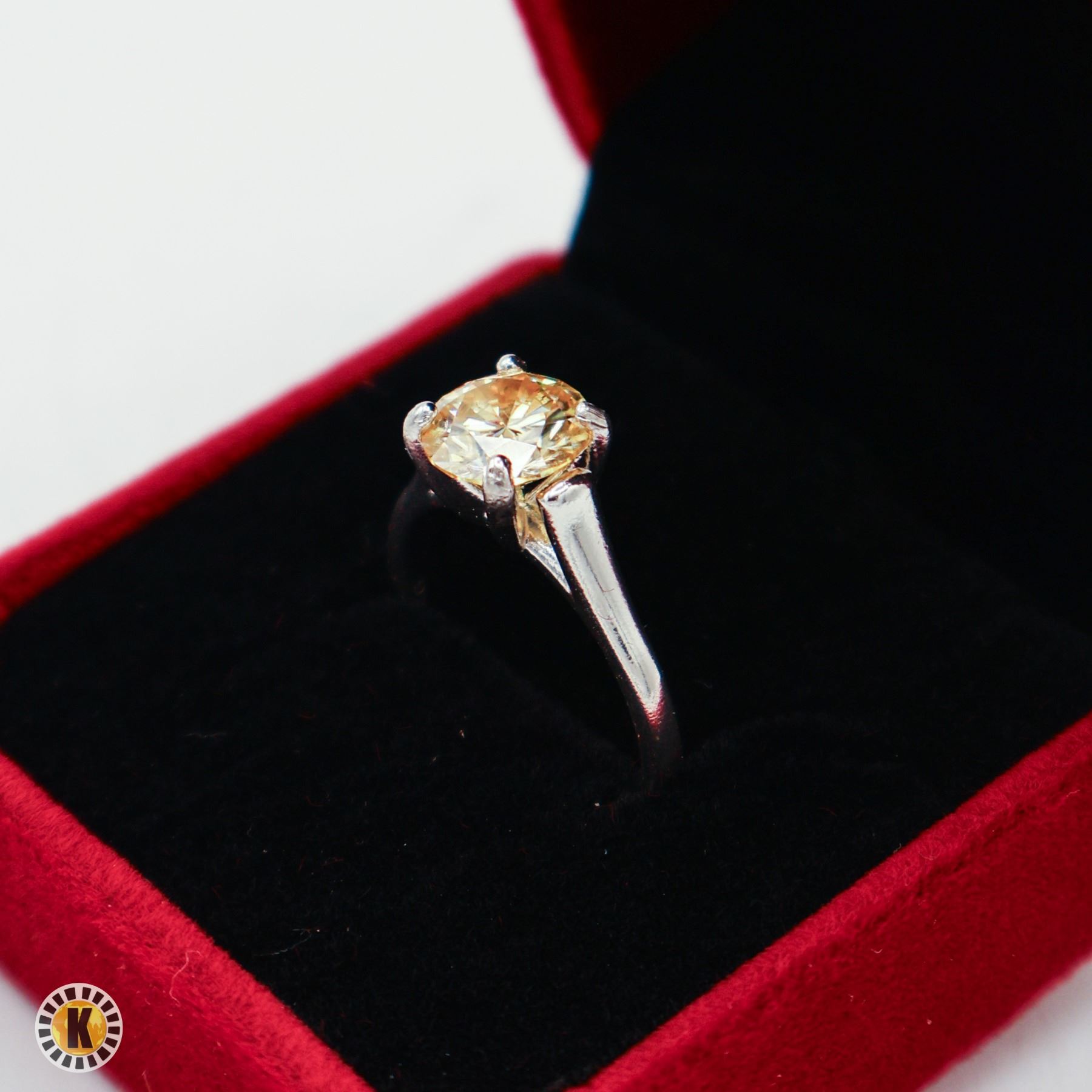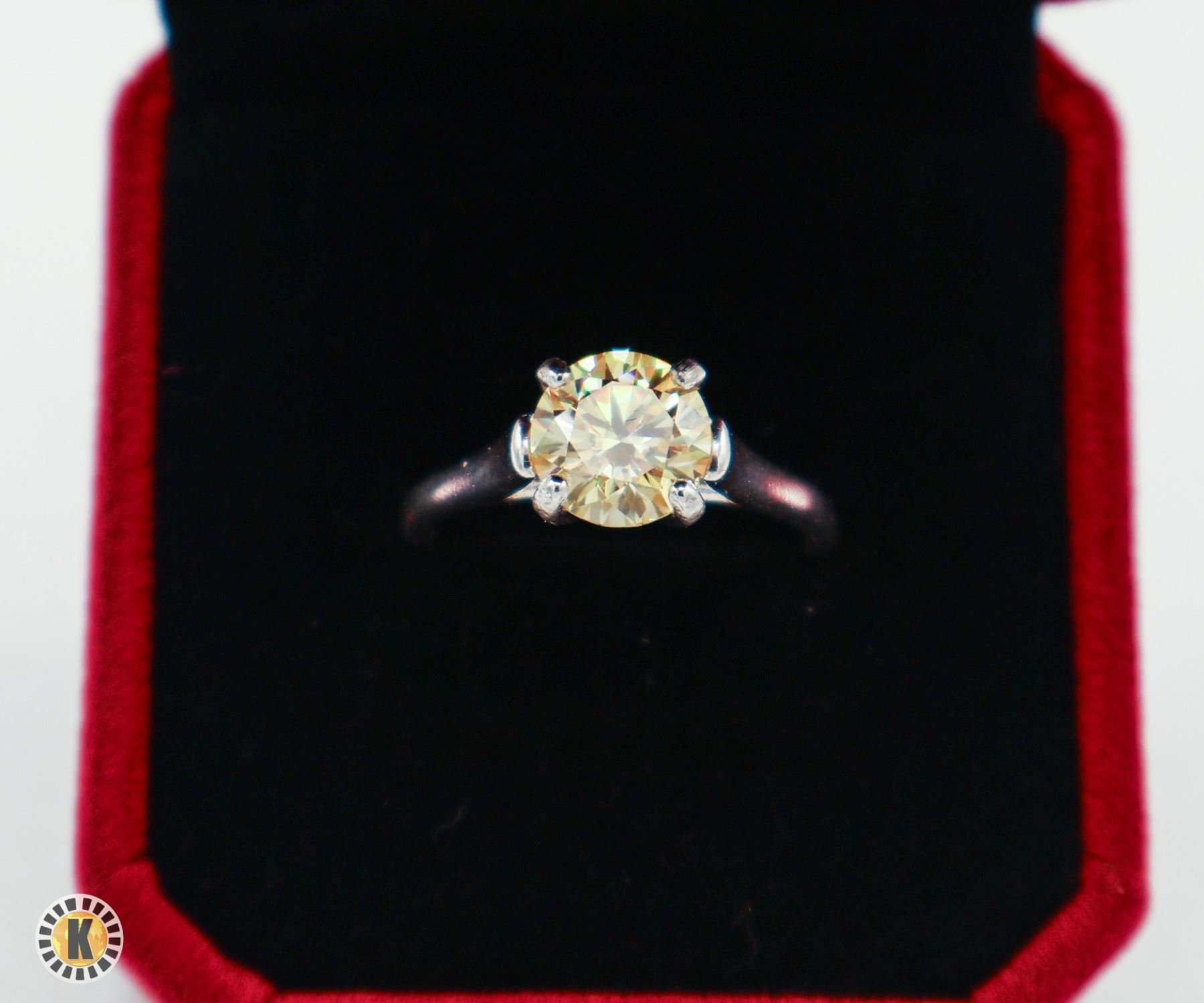 ROUND BRILLIANT CUT MOISSANITE STONE VVS LEMON YELLOW COLOR SET IN 925 SILVER RING SIZE 8 RETAIL VALUE $825.00