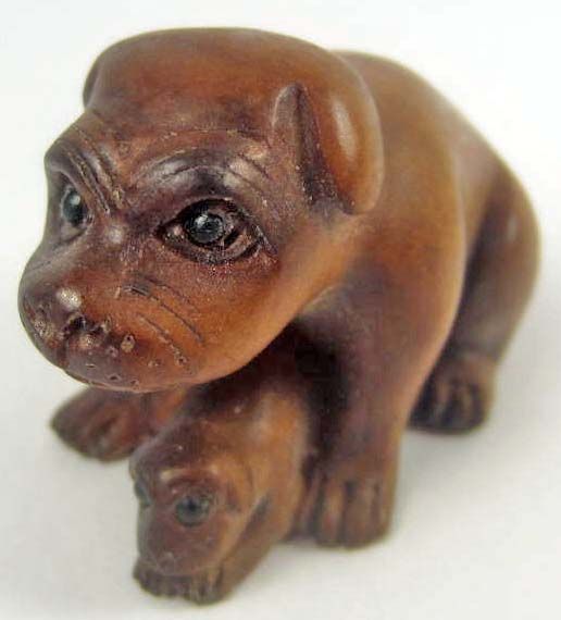 11162 - BOXWOOD DOG MOM & PUPPY NETSUKE