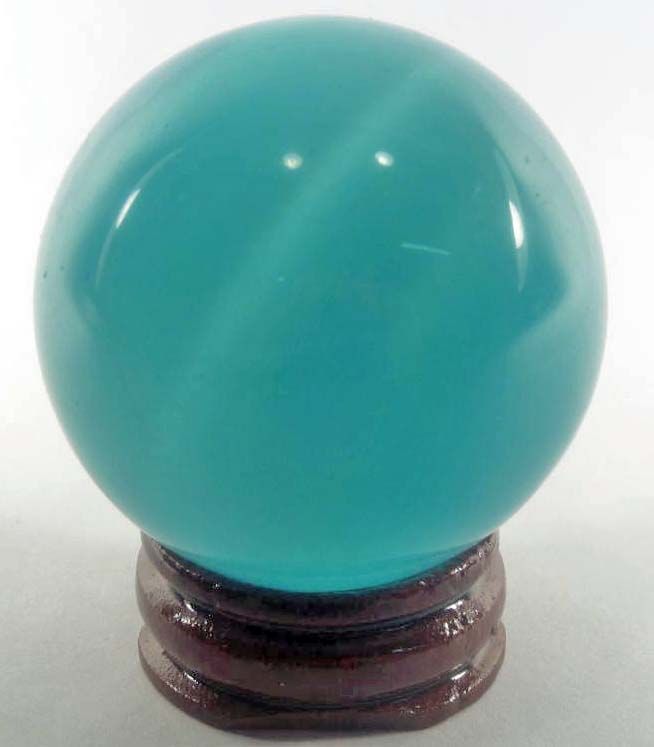 11172 - LIGHT BLUE CAT'S EYE CRYSTAL BALL / SPHERE W/ STAND