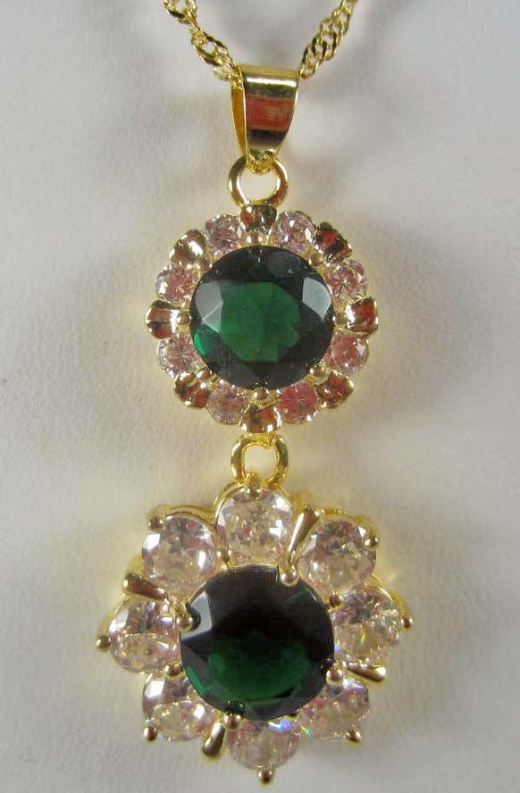 11177 - GOLD PLATED EMERALD AND TOPAZ PENDANT W/ CHAIN