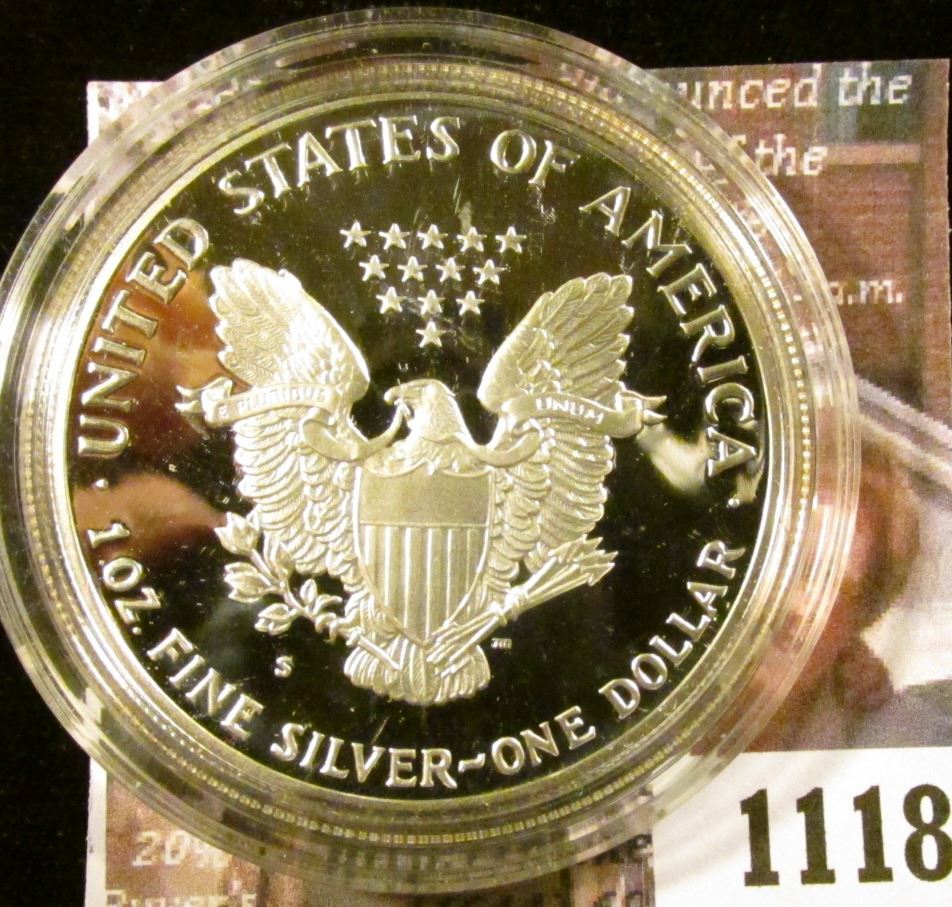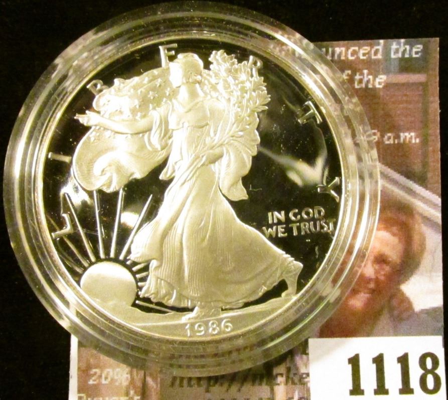 1118 . 1986 American Silver Eagle, Proof in Mint capsule, value $60