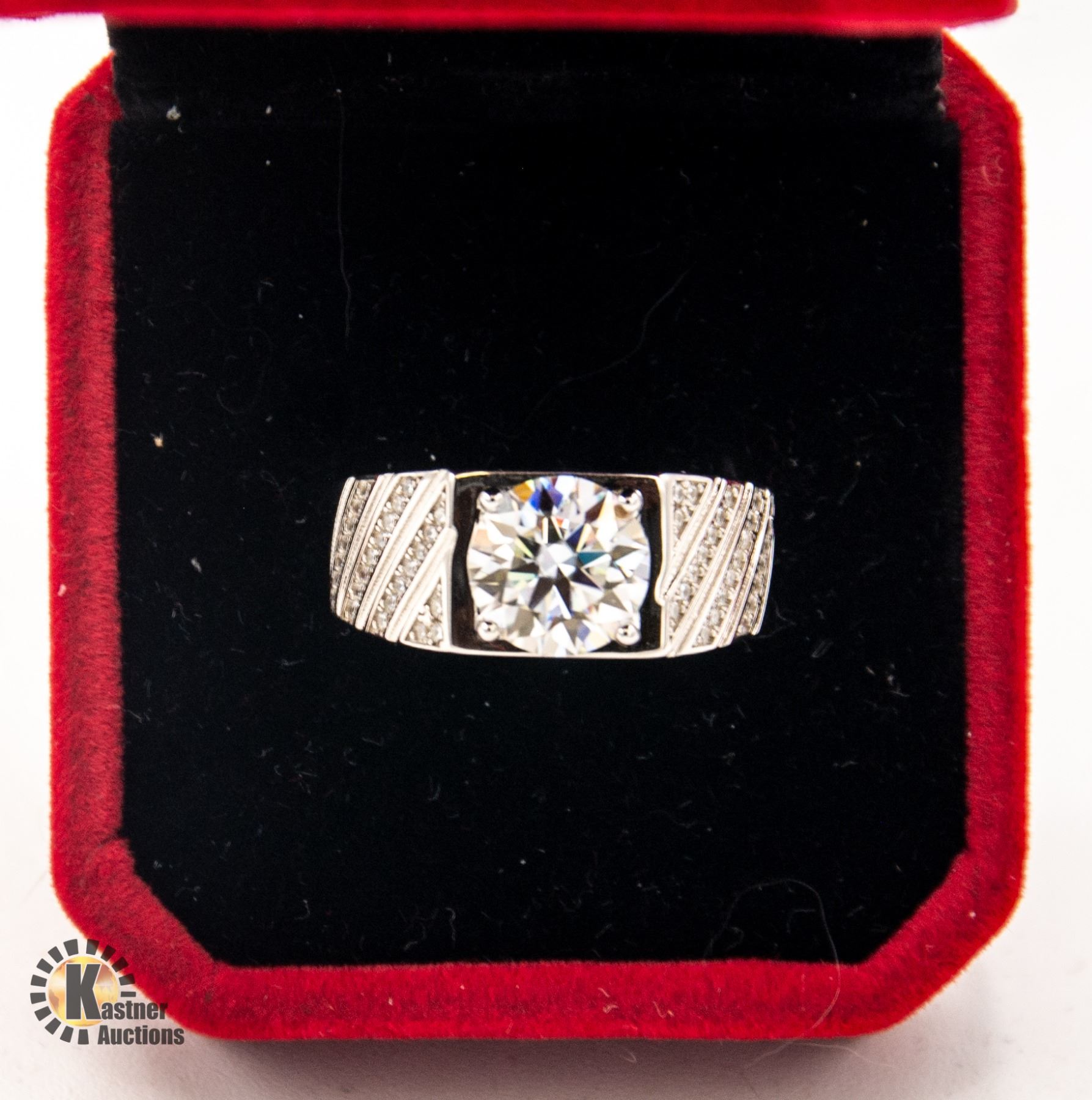 STONE VVS D COLOR WITH 44 ROUND BRILLIANT CUT CUBIC ZIRCONIA SET IN SHANKS SET IN 925 SILVER RING SIZE 10.5 RETAIL VALUE $1,225.00