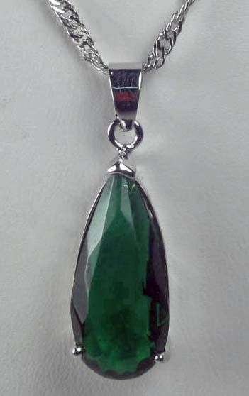 11183 - WHITE GOLD PLATED EMERALD PENDANT W/ CHAIN
