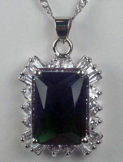 11189 - WHITE GOLD PLATED EMERALD & TOPAZ PENDANT W/ CHAIN