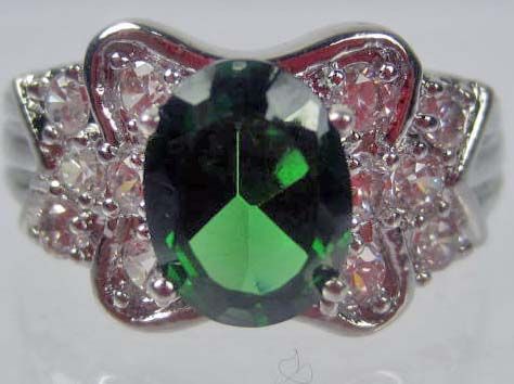 11192 - WHITE GOLD PLATED EMERALD AND TOPAZ RING