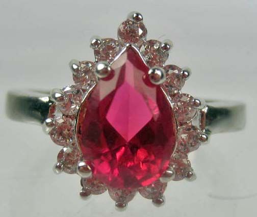 11198 - WHITE GOLD PLATED RUBY AND TOPAZ RING