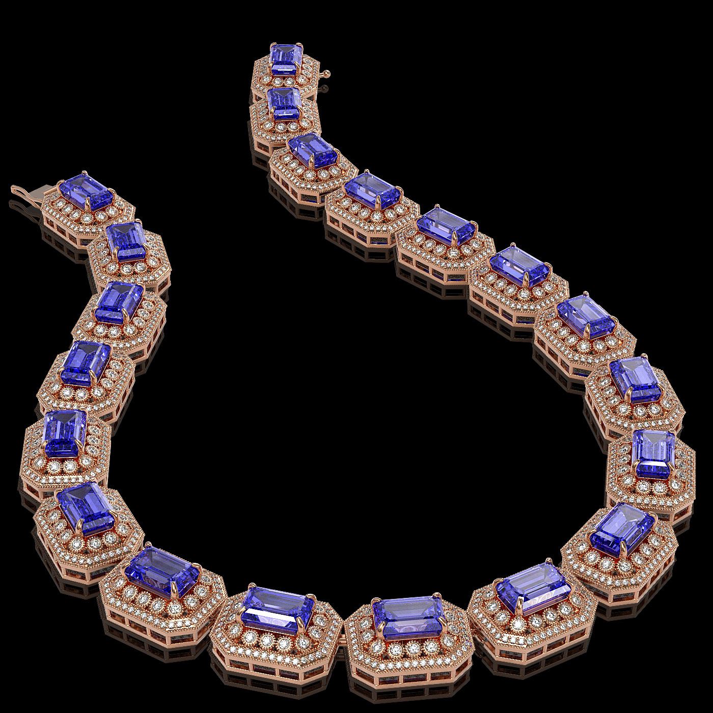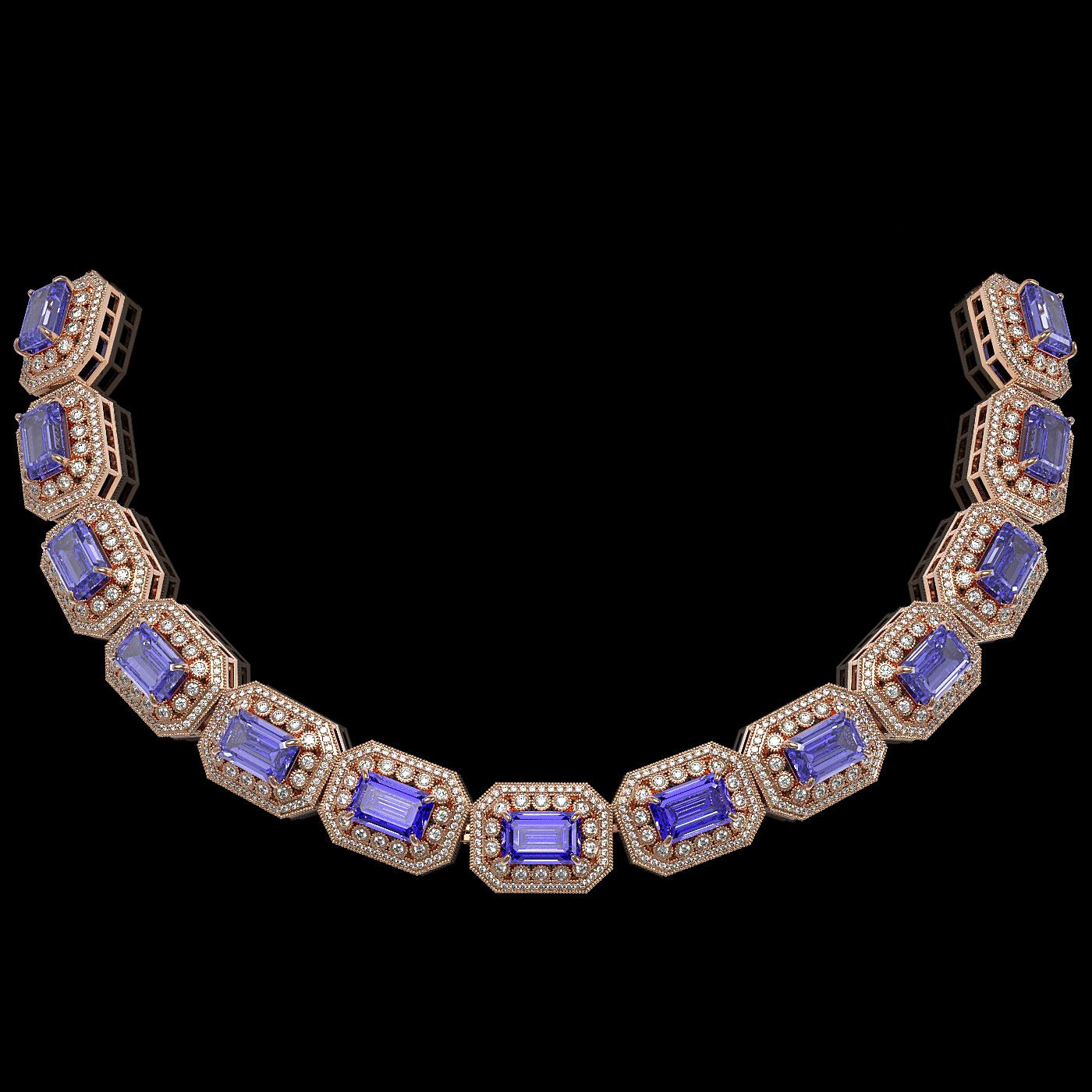 REF-5818M2G - SKU: 43470 ---- 112.65 ctw Tanzanite & Diamond Victorian Necklace 14K Rose Gold