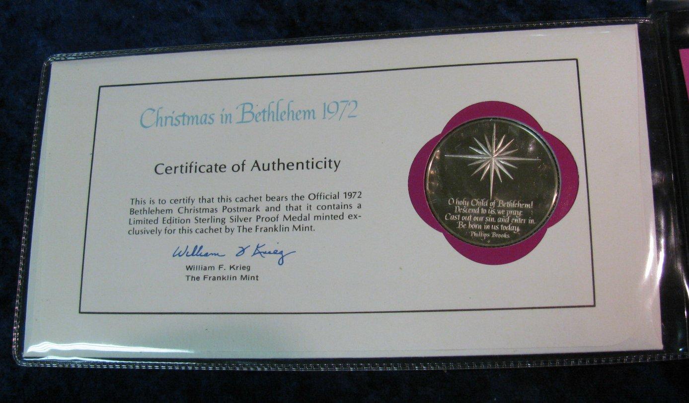 1120. 1972 Christmas Sterling Silver Medal in Cacheted
