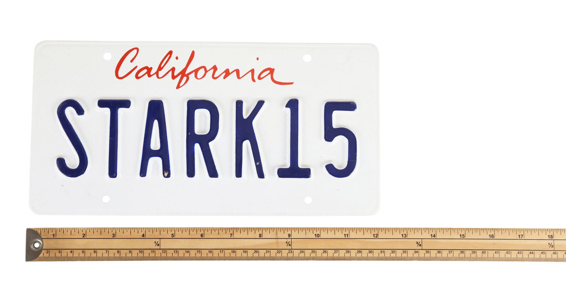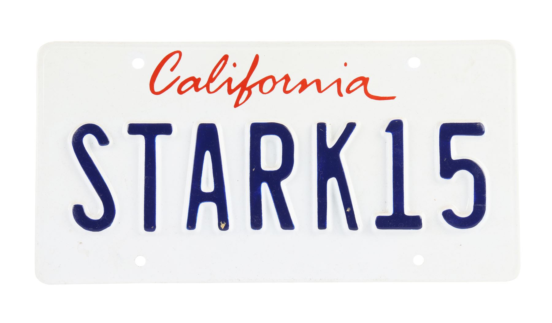 IRON MAN 2 (2010) - Tony Stark's (Robert Downey Jr) "Stark15" License Plate - Tony Stark's (Robert Downey, Jr.) "STARK15" license plate from Jon Favreau's Iron Man 2. As an extension of his vanity, vehicles in Stark's compound were outfitted with license plates that bore his name.