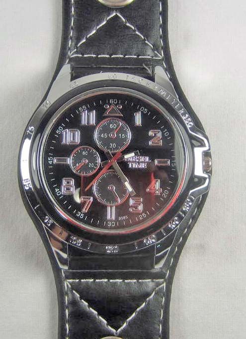 11236 - MEN'S QUARTZ WRIST WATCH W/ BLACK LEATHER BAND - FACE MARKED DIESEL TIME