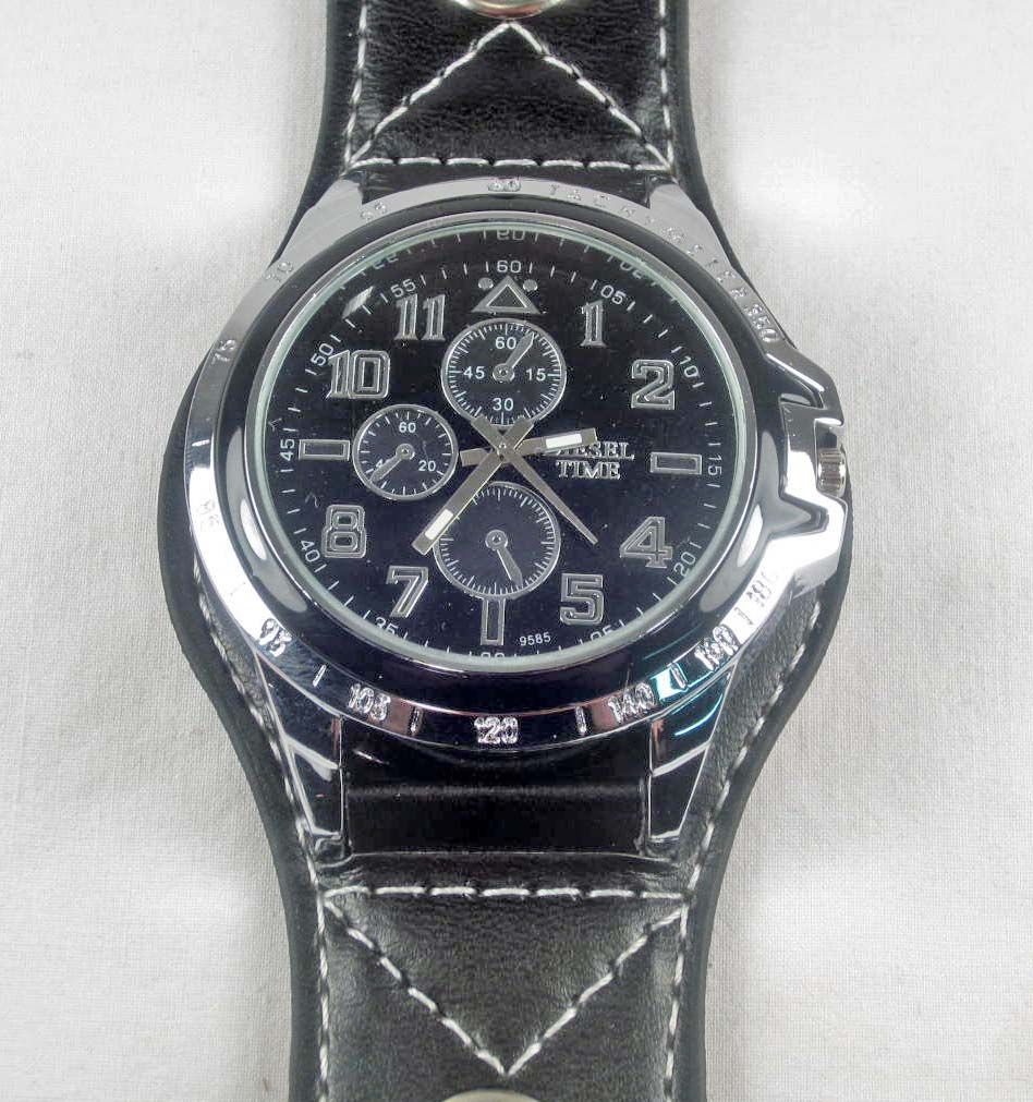 11237 - MEN'S QUARTZ WRIST WATCH W/ BLACK LEATHER BAND - FACE MARKED DIESEL TIME