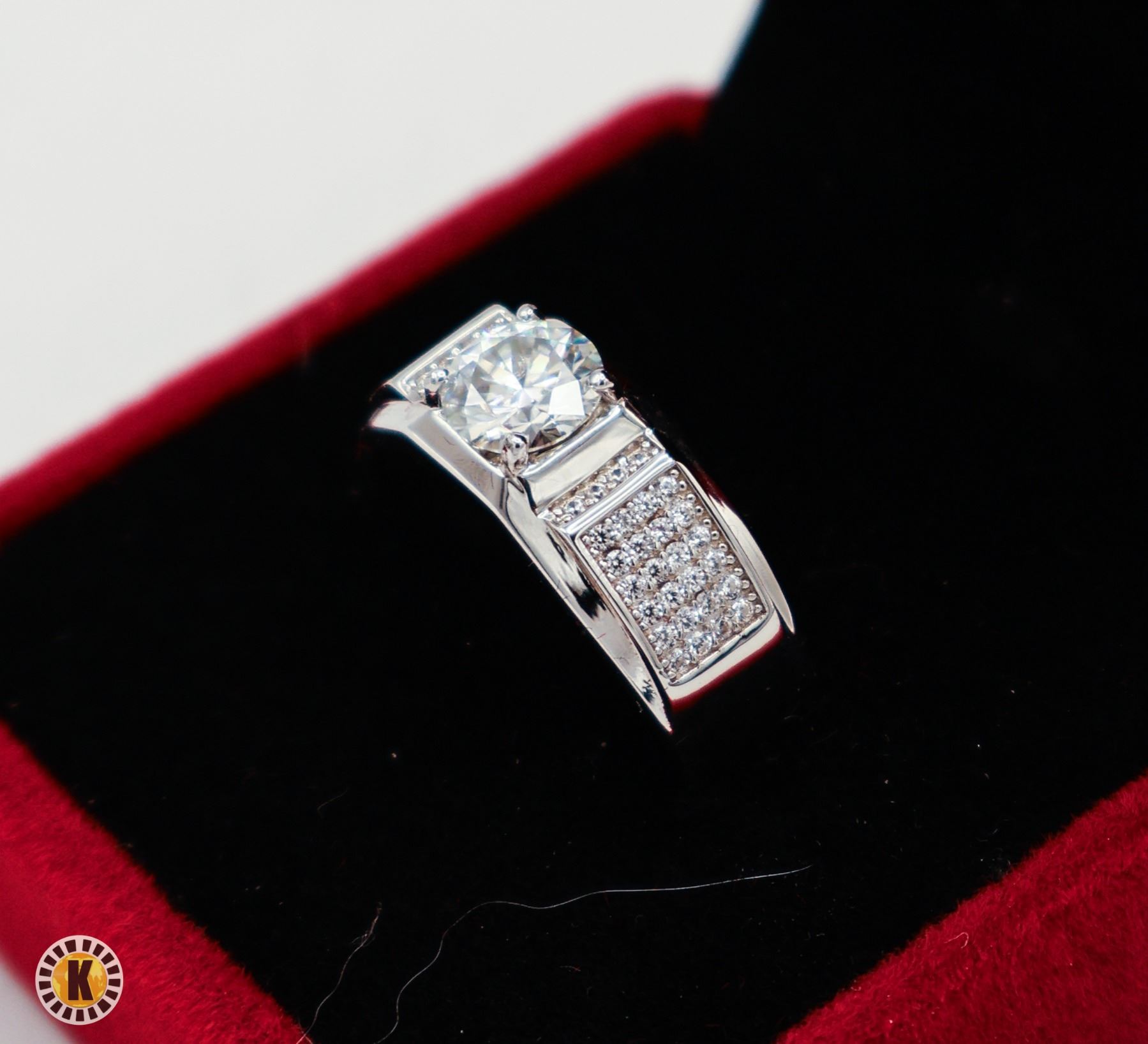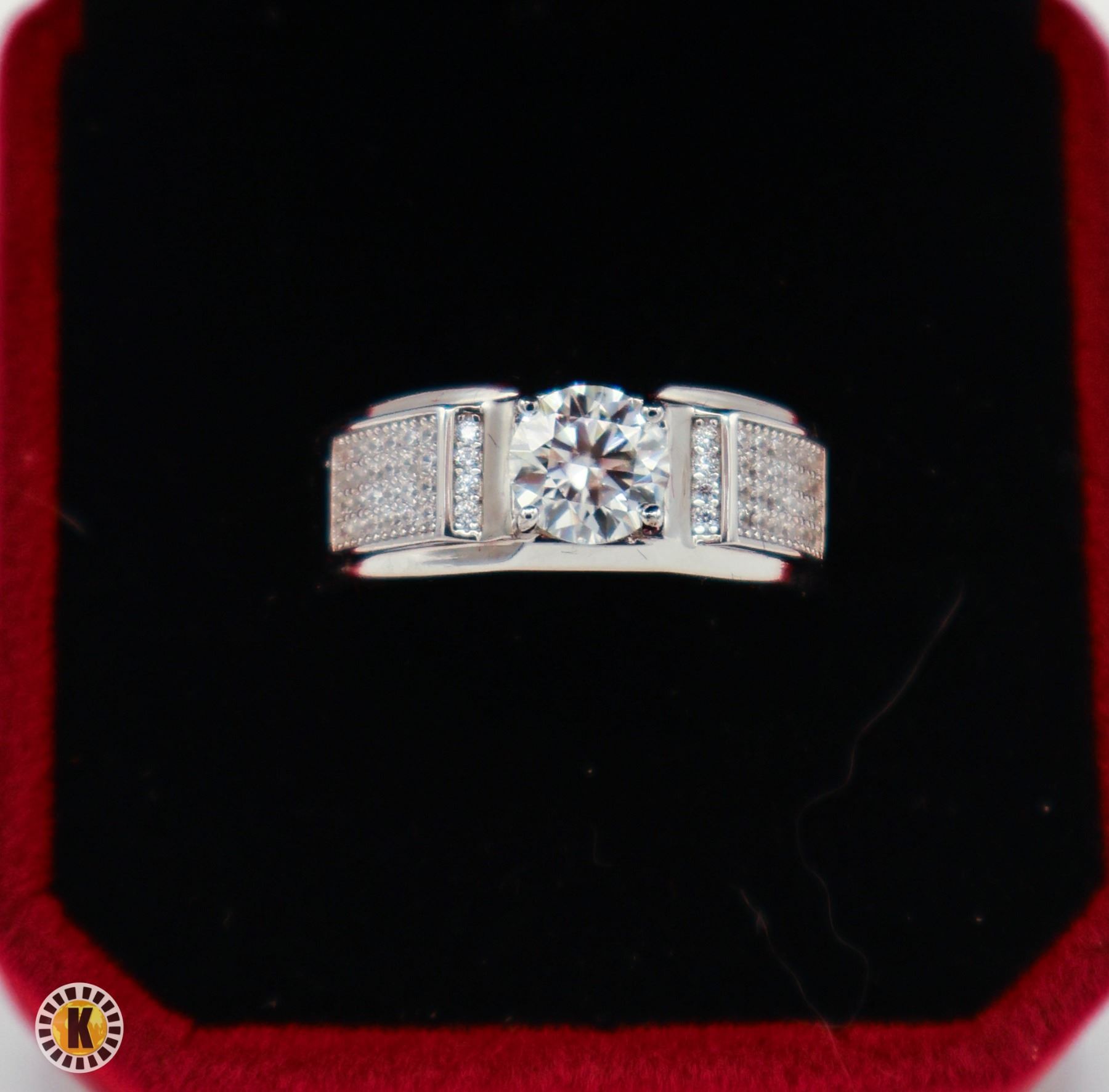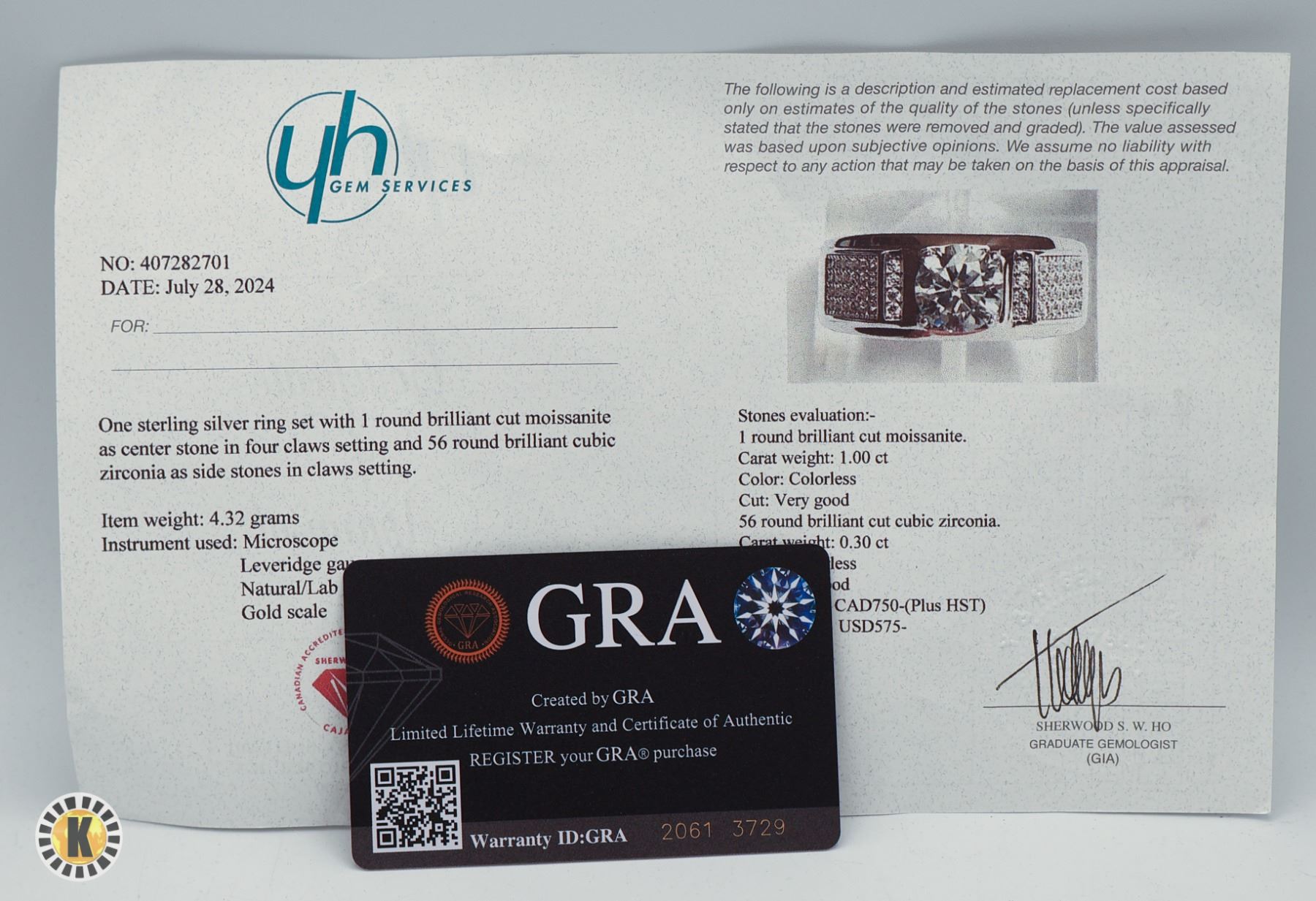 CUT MOISSANITE STONE VVS D COLOR WITH 56 ROUND BRILLIANT CUT CUBIC ZIRCONIA SET IN THE SHANKS SET IN 925 SILVER RING SIZE 10 RETAIL VALUE $750.00