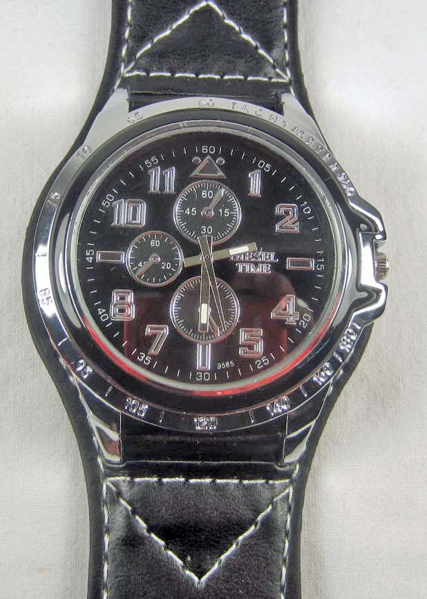 11240 - MEN'S QUARTZ WRIST WATCH W/ BLACK LEATHER BAND - FACE MARKED DIESEL TIME