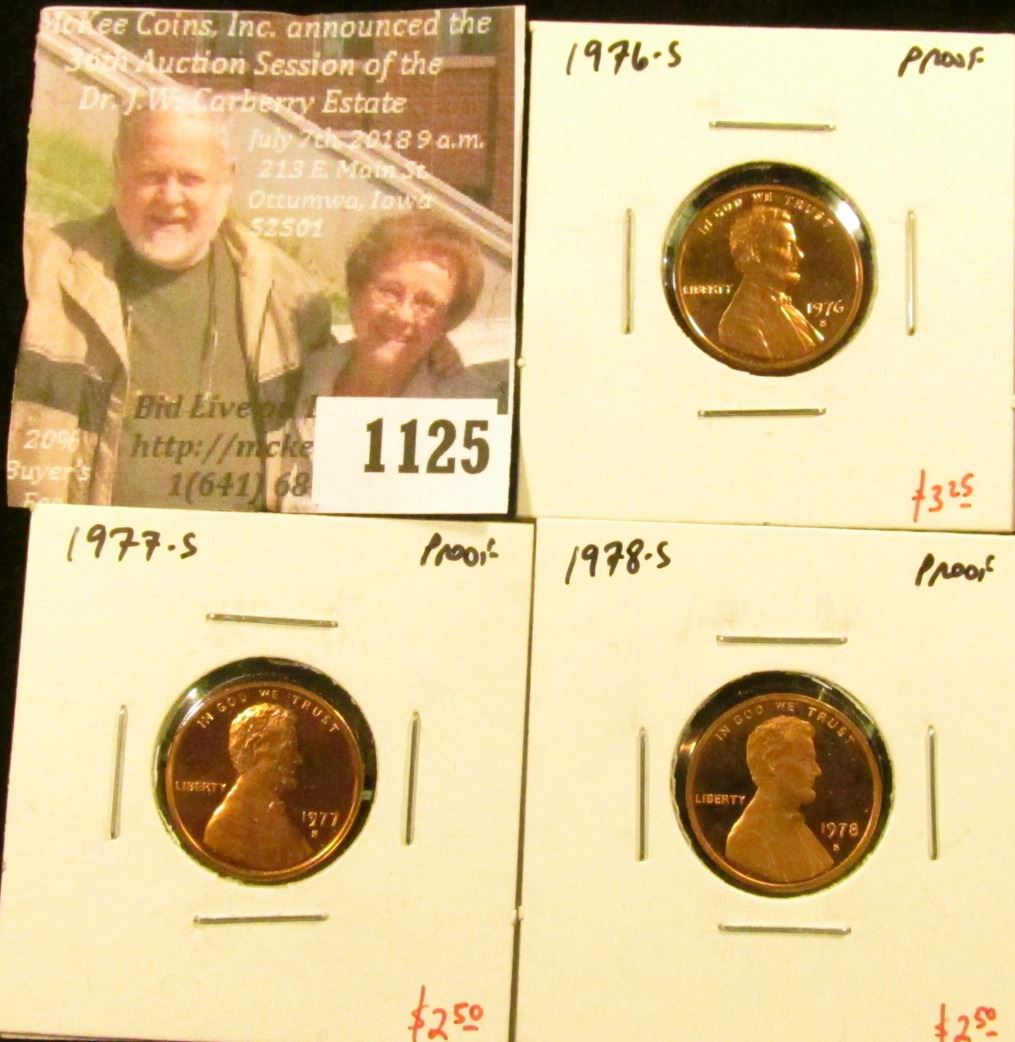 (3) Proof Lincoln Memorial Cents, complete date run 1976-S through 1978-S, group value $8+