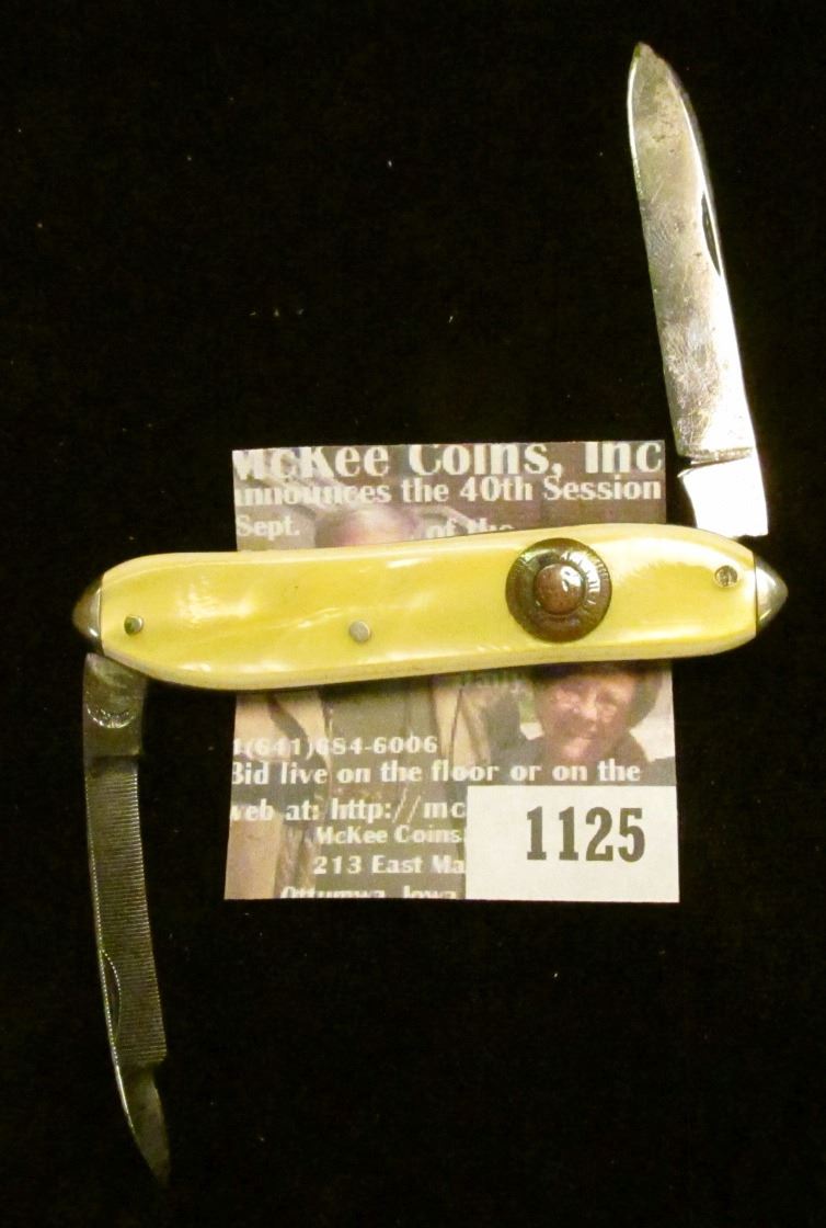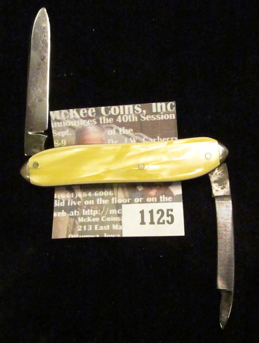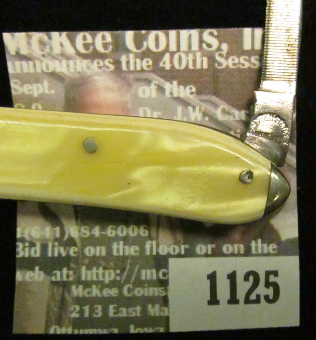 1125 _ Western Two-blade Folder Knife with 2 1/4" blades, yellow mother-of-pearl handle, brass inlay