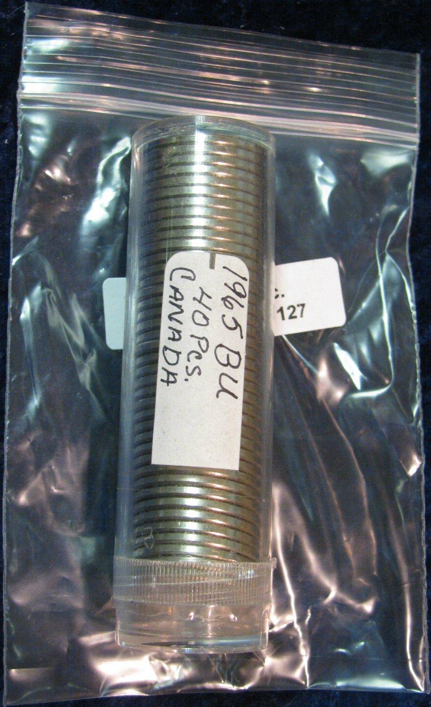 1127. Canada 1965 Roll of 40 BU Nickels.