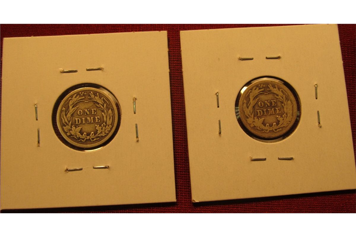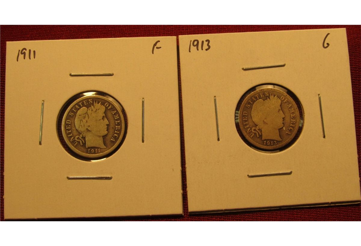 1128. 2 Barber Dimes – 1911 F & 1913 G