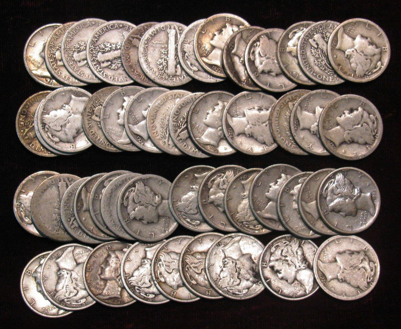1129. (50) Mixed Mercury Silver Dimes. Some VF and a few scarcer dates.