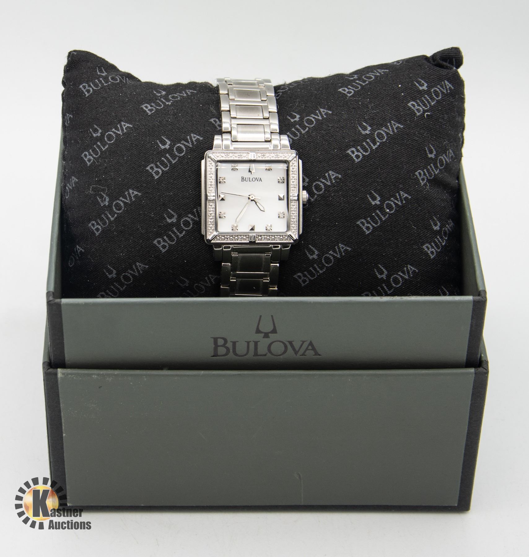 WATCH WITH NEW BATTERY WITH MOTHER OF PEARL FACE AND DIAMONDS ON FACE ORIGINAL PRICE $495.00 **ALL ITEMS MUST BE REMOVED BY 5PM SATURDAY, DECEMBER 14th 2024. ALL REMAINING ITEMS WILL BE SUBJECT TO A $6.00 PER DAY STORAGE CHARGE. ANY ITEMS REMAINING AFTER MONDAY, DECEMBER 30TH 2024 WILL BE CONSIDERED FORFEITED. NO REFUNDS WILL BE ISSUED FOR FORFEITED ITEMS. TO SCHEDULE A PICK UP APPOINTMENT CLICK HERE