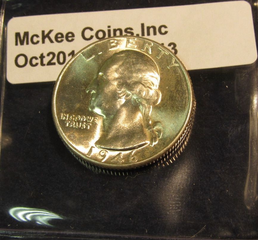 113. 1946 D Washington Quarter. Brilliant Unc. Redbook value $45.00.
