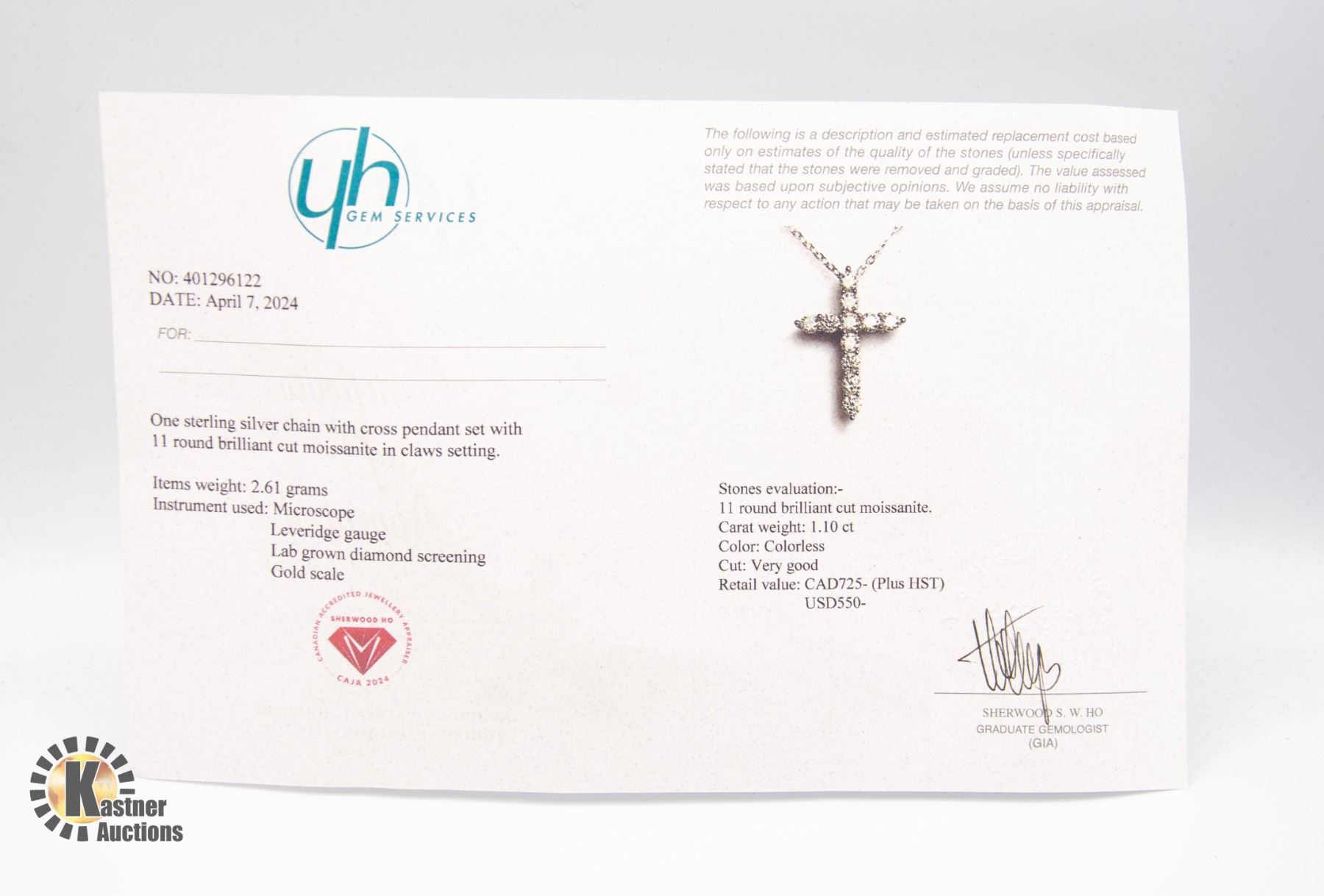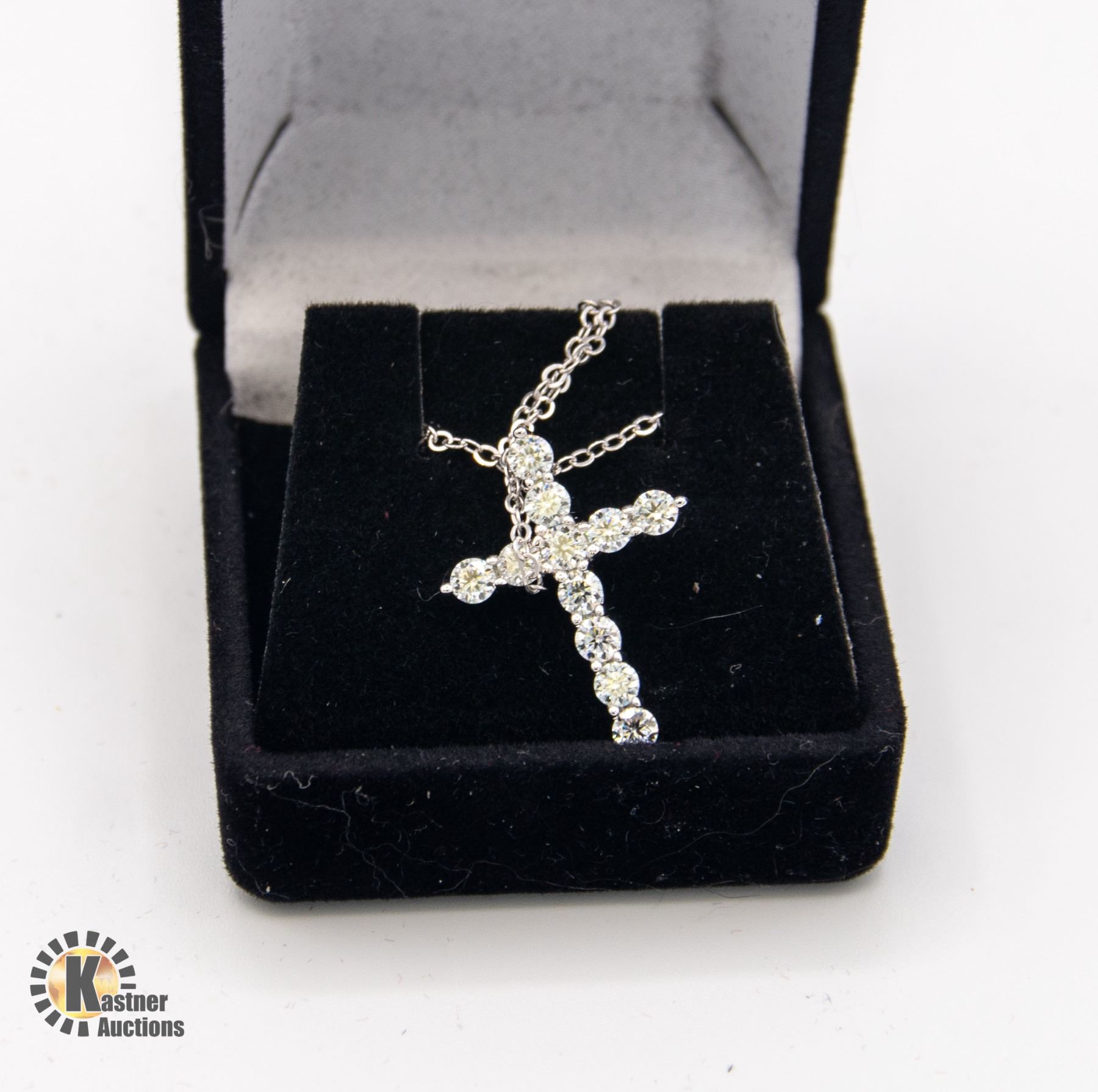 MOISSANITE STONES VVS D COLOR SET IN 925 SILVER CROSS SHAPED PENDANT RETAIL VALUE $725.00