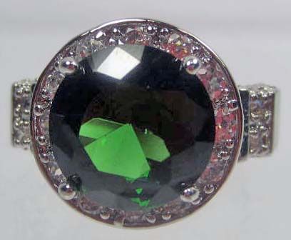 11302 - WHITE GOLD PLATED EMERALD AND TOPAZ RING