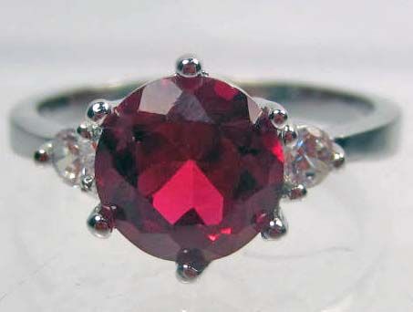 11304 - WHITE GOLD PLATED RUBY AND TOPAZ RING
