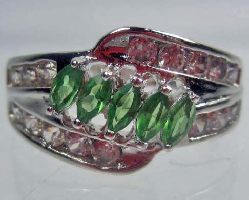 11312 - WHITE GOLD PLATED EMERALD AND TOPAZ RING