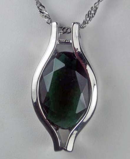 11319 - WHITE GOLD PLATED EMERALD PENDANT W/ CHAIN