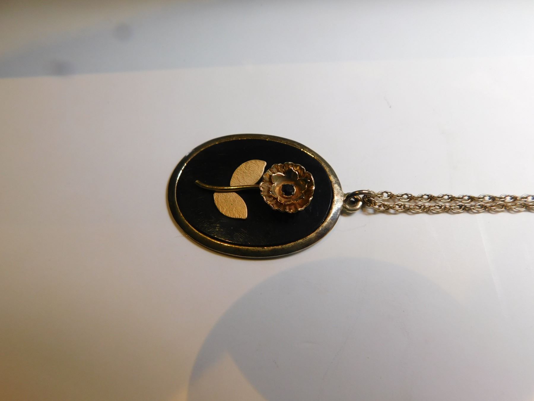 1132. GOLDTONE FLOWER PENDANT ON STERLING CHAIN