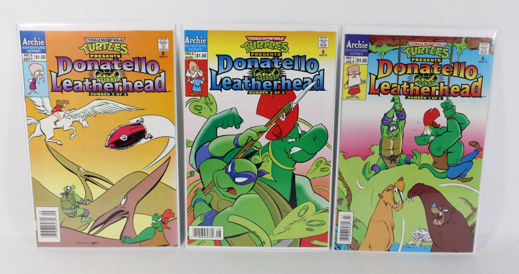 JULY 1993 ISSUES 1 2 3 COMPLETE MINI SERIES ARCHIE ADVENTURE SERIES COMICS TEENAGE MUTANT NINJA TURTLES PRESENTS DONATELLO AND LEATHERHEAD #1-3 LOT OF 3 COMICS