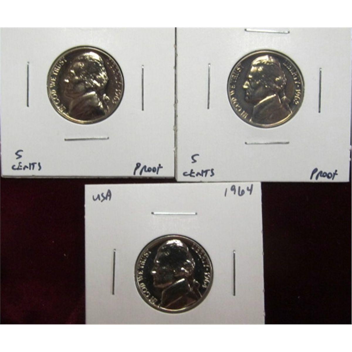 1134. 1962P, 63P, & 64 P Jefferson Nickels. Proof 65.