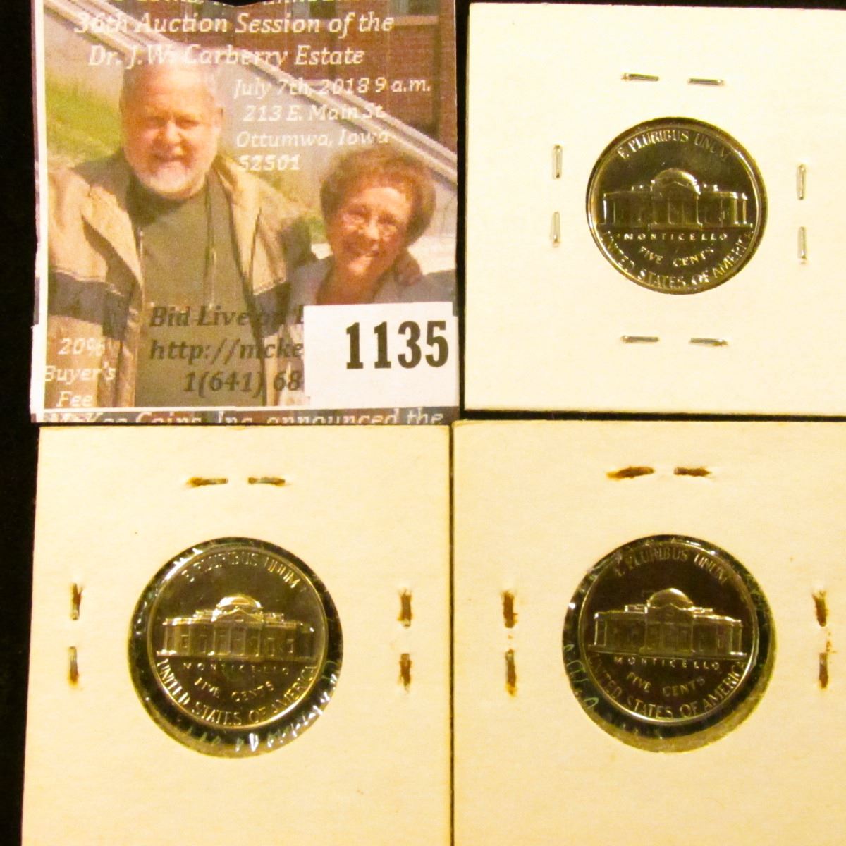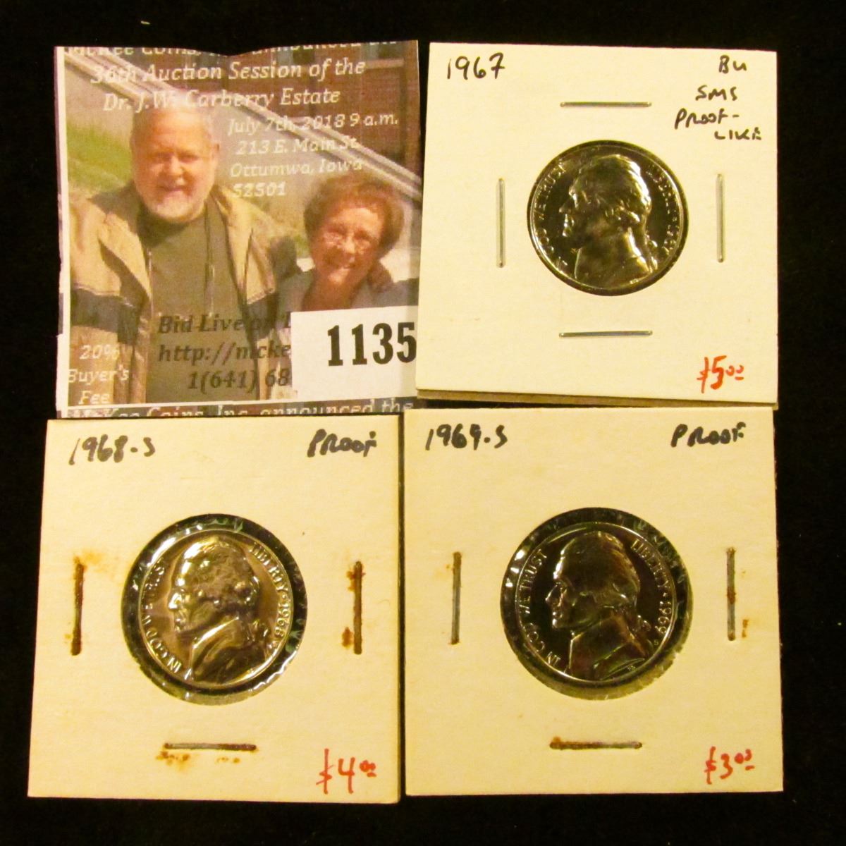1135 . (3) Proof & SMS Jefferson Nickels, 1967 SMS proof-like & 196