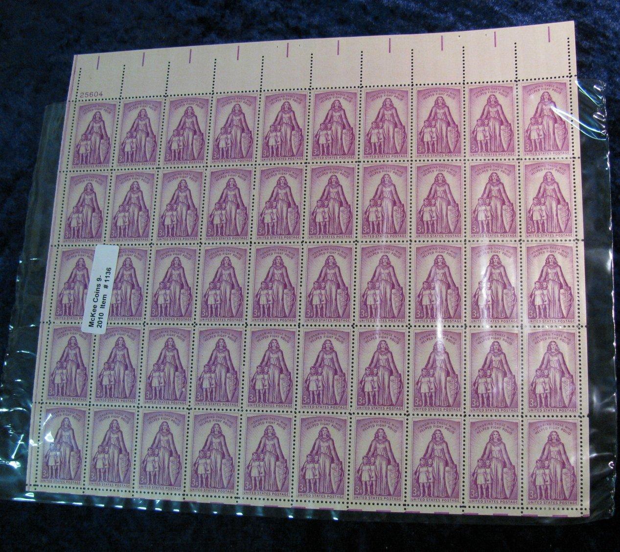 1136. Mint Sheet of 50 3c Help Fight Polio Stamps.