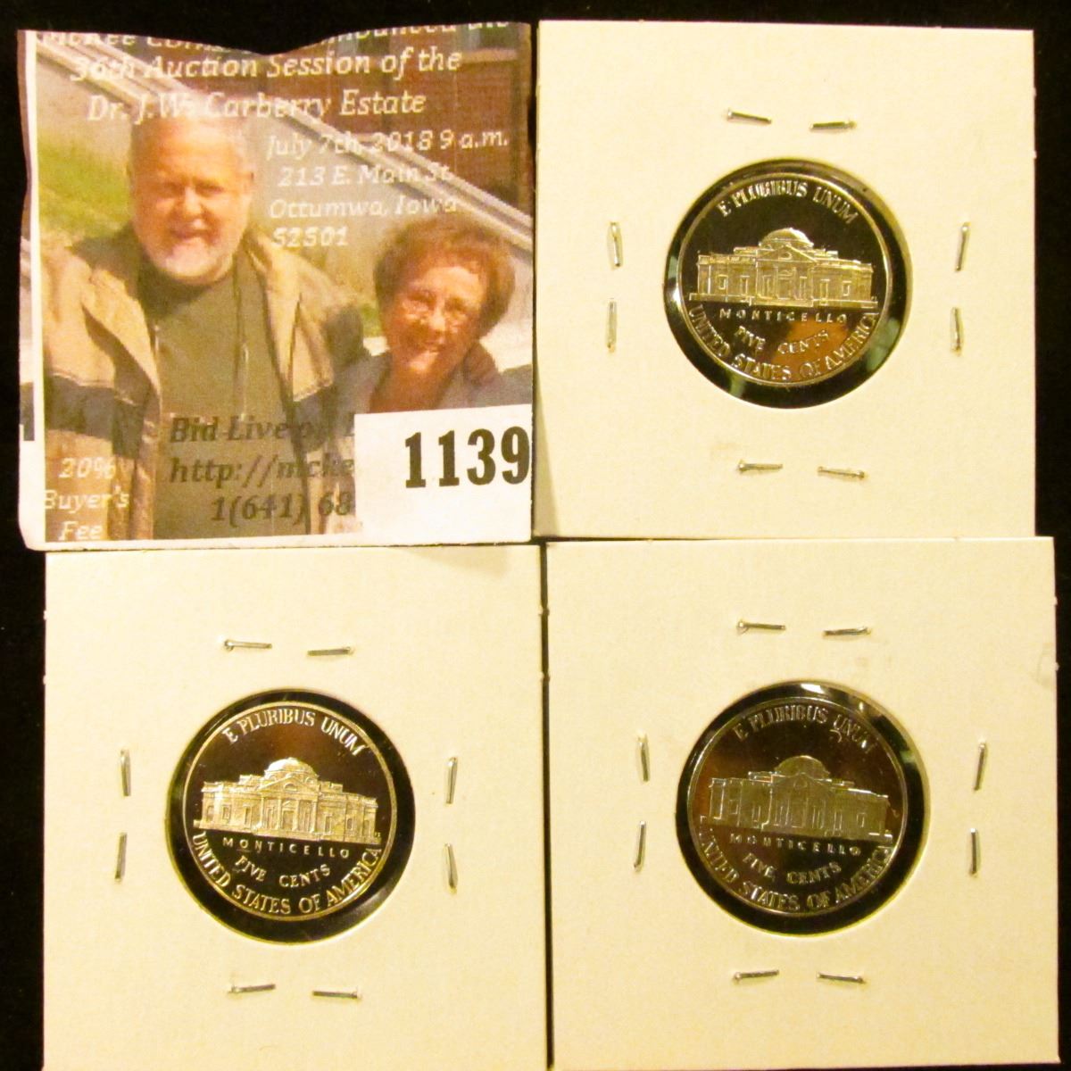 1139 . (3) Proof Jefferson Nickels, 2013-S, 2015-S, 2016-S, group v