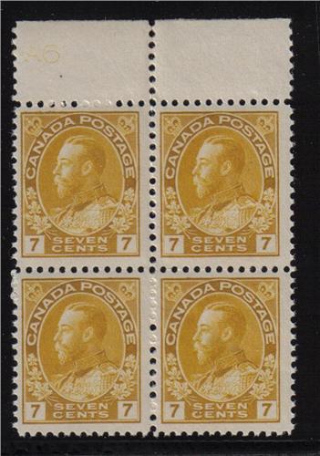 #113b F-VF NH STRAW SHADE BLOCK 4 *ADMIRAL* C$1200,00