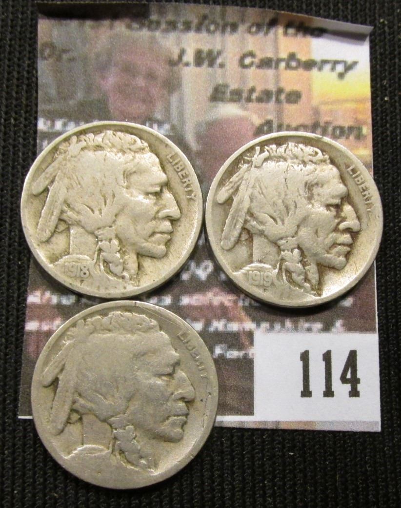114.1917 S G Partial Date, 1918 P, G and 1919 P VG. Buffalo Nickels.