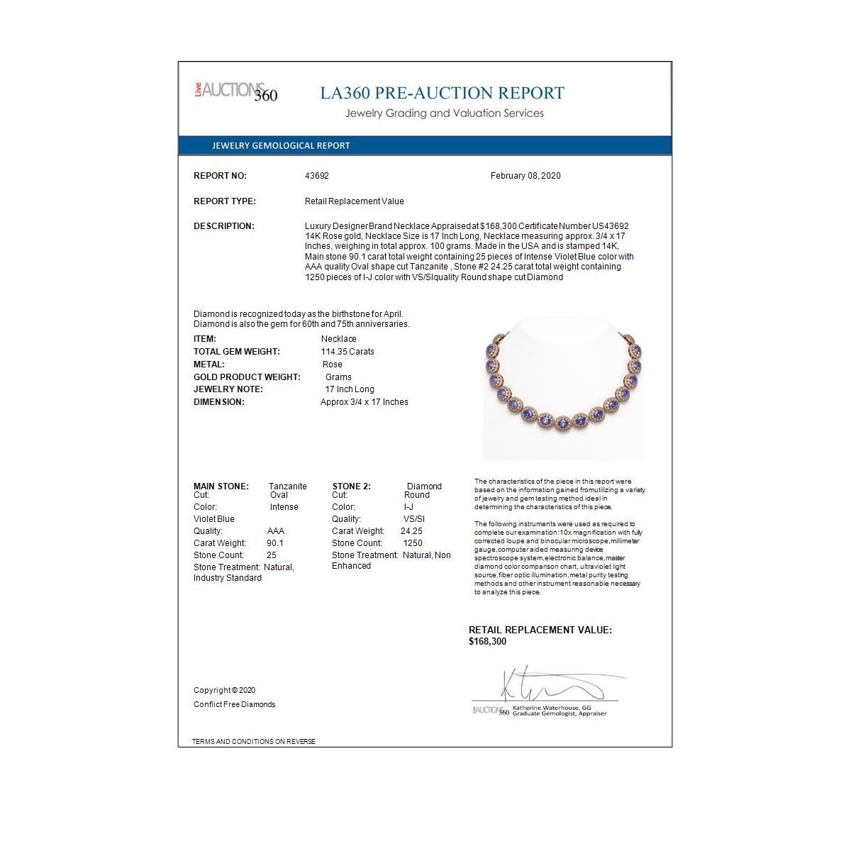 REF-3400A2N - SKU: 43692 ---- 114.35 ctw Tanzanite & Diamond Victorian Necklace 14K Rose Gold