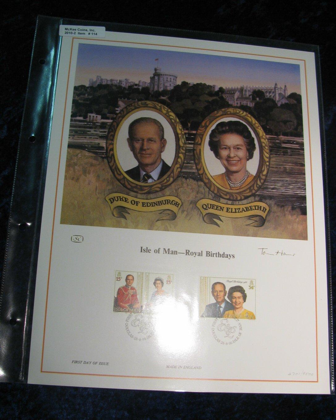 114. Isle of Man - Royal Birthdays First Day of Issue Cover with stamps and Illustration. Signed and numbered limited edition of 9,500.