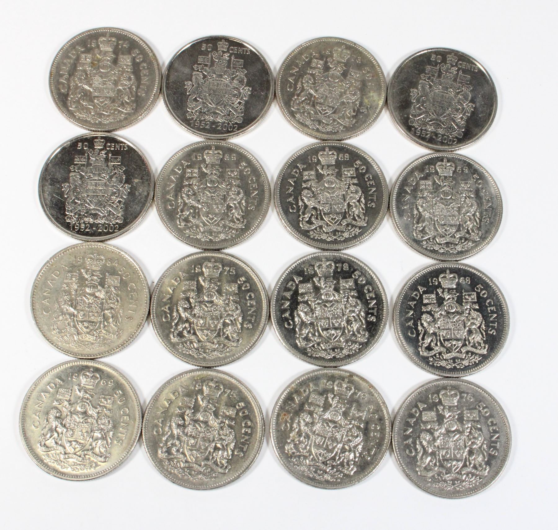 1968 1969 1973 1974 1975 1976 1978 1984 2002 QUEEN ELIZABETH II QEII CANADA CANADIAN CURRENCY 50 CENT HALF DOLLAR COINS