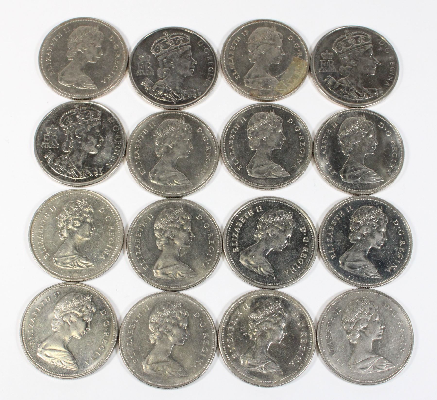 #114 LOT OF 15 CANADA 50 CENT HALF DOLLAR COINS