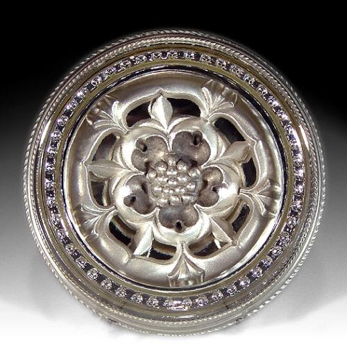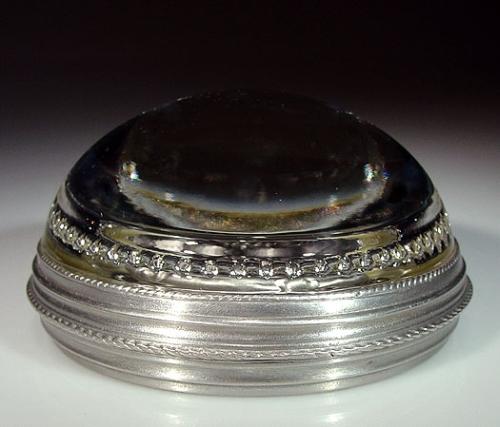 Meadow Mountain Designs pewter and glass paperweight, containing a cast-pewter flower, under a crystal dome. Round pewter base. Signed/dated, "Charles Hill 1983 and 1986". Diameter 3 3/8". NO RESERVE